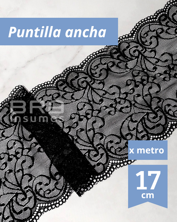 [P07] Puntilla Elastizada 17 cm - Negro (x Metro)