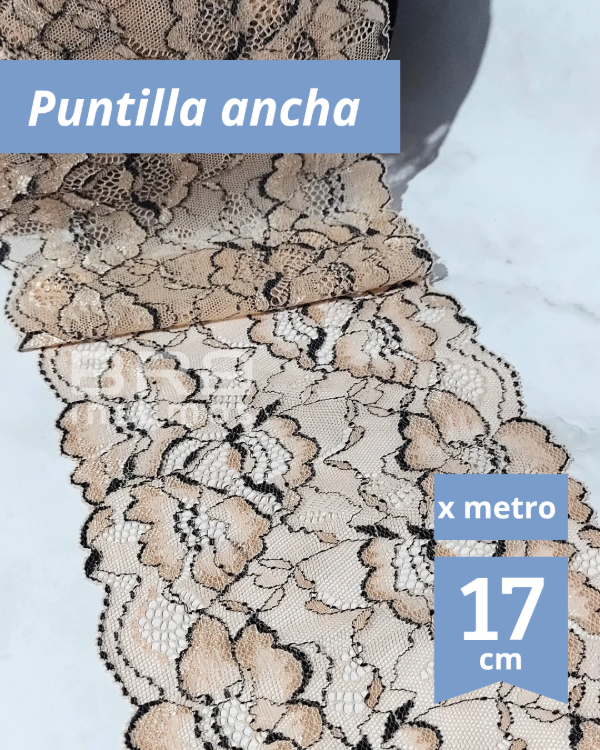 [P11] Puntilla Elastizada Bicolor 17 cm - Rosa Vintage c/Negro (x Metro)